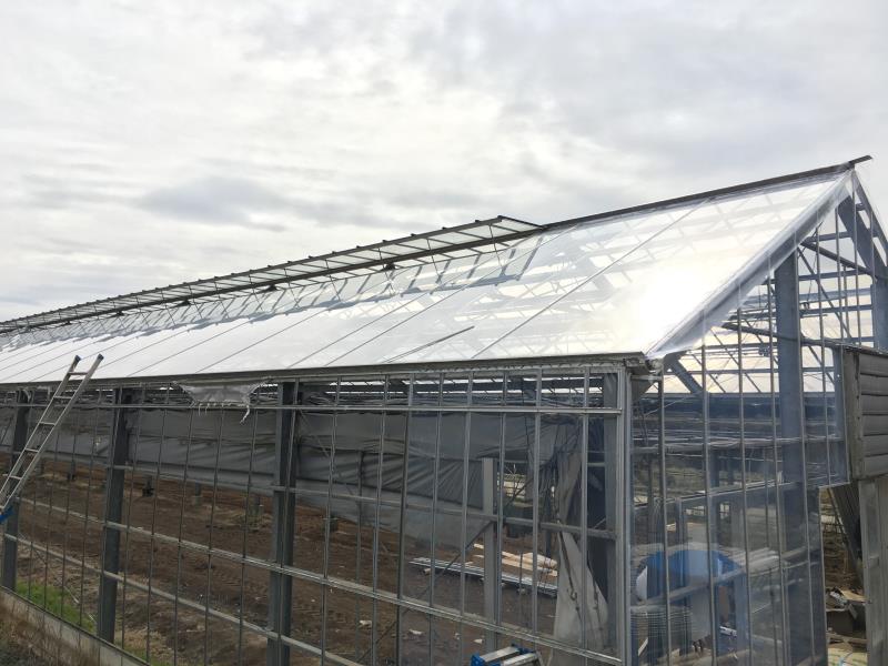 鉄骨ハウスの被覆張替工事と水耕システムの設置工事をさせて頂きました。