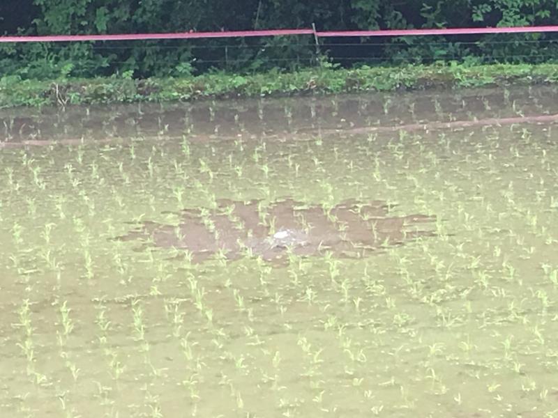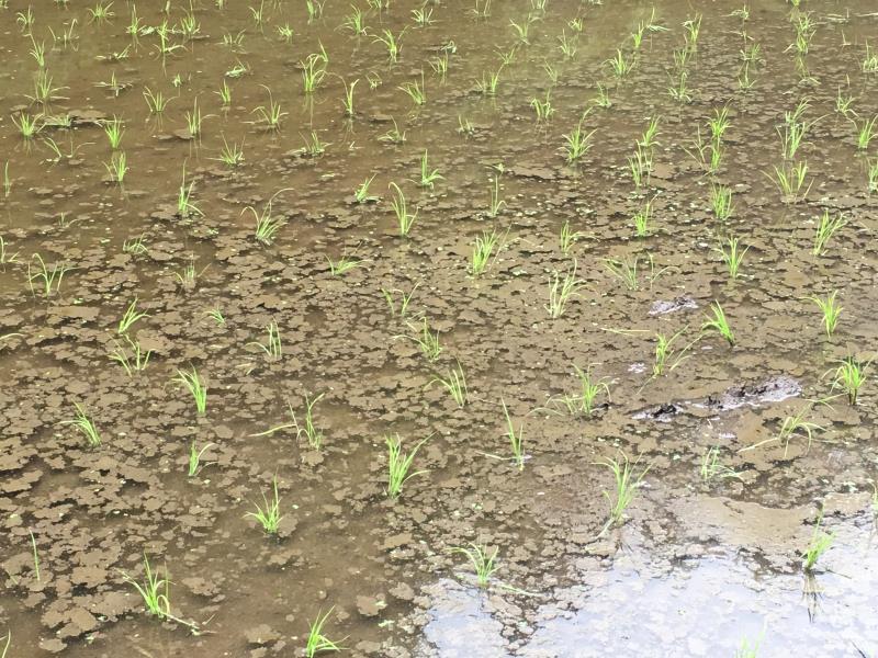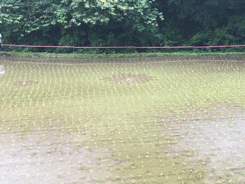 一部表層剥離があり、またうっすらと藻が発生しており、ジャンボ剤を試験散布する圃場としては、悪条件ではありましたが、そこがまた試験のやりがいがあるところでございます。