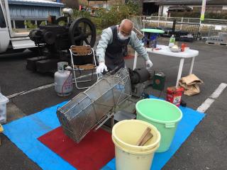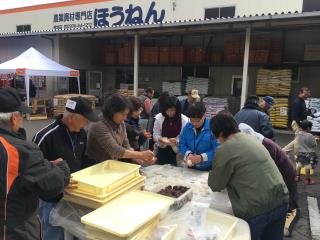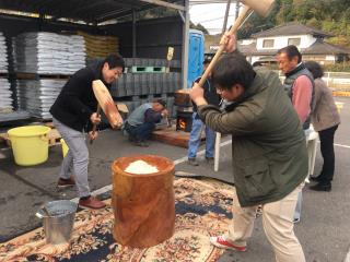 赤字覚悟の価格で資材などの特売会、ご来店頂いたお客様への手土産として粗品を準備し、いろいろな機械の実演会、ポン菓子実演、収穫を祝い「餅つき大会」なども行わさせて頂きました。ご来場者様やご近所の方々、お取引先の皆さんなどが参加し盛大に行うことが出来ました。改めて感謝いたします。ありがとうございました。